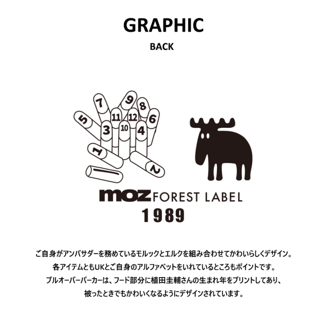 | 商品Data | 植田圭輔さんを迎えたmoz FOREST LABEL コラボレーション企画! 今回はZIPパーカーと長袖Tシャツ、スウェットパンツをご用意! 【デザイン】 ご自身がアンバサダーを務めているモルックとエルクを組み合わせてかわいらしくデザイン。 各アイテムともUKとご自身のアルファベットをいれているところもポイントです。 プルオーバーパーカーは、フード部分に植田圭輔さんの生まれ年をプリントしてあり、 被ったときでもかわいくなるようにデザインされています。 【植田圭輔様ファンクラブ会員特典】 植田圭輔様ファンクラブ会員の方は、ご注文時に備考欄へ会員番号を 記載いただきますと特典としてポストカードを同梱させていただきます。 尚、ポストカードについてのお問い合わせや不良品が発生した場合には ファンクラブへ直接お問い合わせくださいますようお願いいたします。 ※現時点での商品の発送予定時期は【12月中旬頃~12月下旬頃発送】を予定しております。 尚、工場の生産の都合上、お客様のご入金・決済のタイミングにより前後する場合がございます。 予めご了承ください。 ※商品代金が10万円以上にて代引き決済を利用してのご注文につきましては、 トラブル防止のため、決済方法をクレジットカード決済もしくはコンビニ決済に変更 させていただく場合がございます。変更前にお電話、メールにてご連絡をさせていただきます。※ ※商品によっては撮影時にサンプルを使用しているため若干仕様が異なる場合がございます。 また、サイズ・カラーによっては仕様が異なる場合もございます。 ※手作業で縫製をしているため縫製の仕様により、 個体差が生じてしまいますので、1~2cm程度の誤差は予めご了承くださいませ。 ※洗濯機を使用した場合、お届け時のサイズより多少縮む場合がございます。 洗濯機を使用する場合は裏返してネットに入れることを推奨しております。 また、タンブラー乾燥機を使用しますとプリントが剥がれる恐れがありますので 避けていただきますようお願いいたします。 また、洗濯時の液温は40度以下とし、 塩素系および酸素系漂白剤の使用は避けていただきますようお願いいたします。 アイロンにつきましてもプリント及び刺繍部分は避け、 生地部分にアイロンをかける場合にはあて布をして110度(低温)にてお願いいたします。 ※また、受注生産とさせていただいておりますが、 各色・サイズ毎に生産数に限りがございます為、 生産数の上限に達しました場合在庫切れとなる場合がございます。 予めご了承頂けますようお願い致します。 |