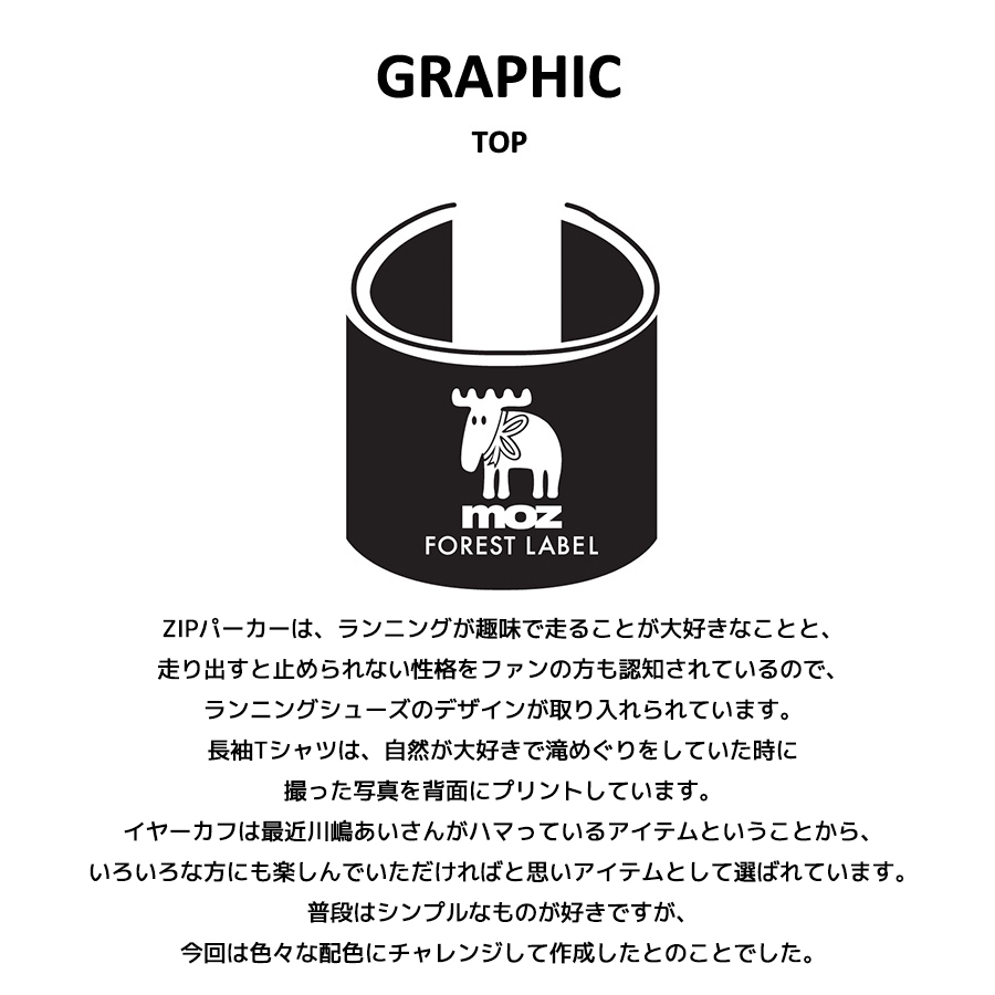 | 商品Data | 川嶋あいさんを迎えたmoz FOREST LABEL コラボレーション企画! 今回は長袖Tシャツ、ZIPパーカー、イヤーカフをご用意! 【デザイン】 ZIPパーカーは、ランニングが趣味で走ることが大好きなことと、走り出すと止められない性格をファンの方も認知されているので、ランニングシューズのデザインが取り入れられています。 長袖Tシャツは、自然が大好きで滝めぐりをしていた時に撮った写真を背面にプリントしています。 イヤーカフは最近川嶋あいさんがハマっているアイテムということから、いろいろな方にも楽しんでいただければと思いアイテムとして選ばれています。 普段はシンプルなものが好きですが、今回は色々な配色にチャレンジして作成したとのことでした。 メッキ加工:国内加工 原型作成:国内 ※アレルギーの反応等がその時の体調や個人差により出る場合がございますので、 金属製アクセサリーを初めてご使用の場合は必ず「パッチテスト」をしてご使用ください。 【パッチテストとは】 金属アレルギーの場合、特殊なテープに24種類の金属試薬をつけてアレルギーの有無を調べる検査です。 皮膚科などで相談をすれば身近にできる検査です。 いくつか検査中に注意する点がありますのでテストを受ける病院で検査について相談してください。 ※現時点での商品の発送予定時期は【3月下旬頃~4月上旬頃順次発送予定】を予定しております。 ※受注生産の為、発送予定時期が前後する場合がございます。 ※高額注文の場合には ご注文後にお電話にてご連絡をさせていただく場合がございます。 お電話にてご連絡が取れない場合にはメールにてご連絡させていただき、 ご連絡日より3日以内にご返信をいただけない場合には不正注文の可能性があると判断しトラブル防止のためご注文をキャンセルとさせていただきます。 また、受注生産とさせていただいておりますが、 各色・サイズ毎に生産数を設けさせて頂いております為、 生産数の上限に達しました場合在庫切れとなる場合がございます。 ※商品画像は照明などの影響により実際の色と異なる場合がございます。 ※加工の特性上、仕上がり寸法及び色のニュアンスが多少異なることがあります。 |