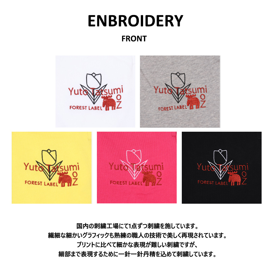 | 商品Data | 辰巳ゆうとさんを迎えたmoz FOREST LABEL コラボレーション企画第2弾! 今回は長袖Tシャツ、ZIPパーカー、スウェットパンツをご用意! 【デザイン】 前回デザインはアクティブ要素が多かったため、今回は普段使いしやすいデザインとなっています。 女性でも着やすいよう「チューリップ」をデザインに取り入れられています。 ZIPパーカーはイエロー、長袖Tシャツはチャコールがお気に入りとのことでした。 ※現時点での商品の発送予定時期は【9月下旬~10月下旬頃順次発送】 を予定しております。 尚、工場の生産の都合上、お客様のご入金・決済のタイミングにより前後する場合がございます。 予めご了承ください。 ※商品代金が10万円以上にて代引き決済を利用してのご注文につきましては、 トラブル防止のため、決済方法をクレジットカード決済もしくはコンビニ決済に変更 させていただく場合がございます。変更前にお電話、メールにてご連絡をさせていただきます。※ ※商品によっては撮影時にサンプルを使用しているため若干仕様が異なる場合がございます。 また、サイズ・カラーによっては仕様が異なる場合もございます。 ※手作業で縫製をしているため縫製の仕様により、 個体差が生じてしまいますので、1~2cm程度の誤差は予めご了承くださいませ。 ※洗濯機を使用した場合、お届け時のサイズより多少縮む場合がございます。 洗濯機を使用する場合は裏返してネットに入れることを推奨しております。 また、タンブラー乾燥機を使用しますとプリントが剥がれる恐れがありますので 避けていただきますようお願いいたします。 また、洗濯時の液温は40度以下とし、 塩素系および酸素系漂白剤の使用は避けていただきますようお願いいたします。 アイロンにつきましてもプリント及び刺繍部分は避け、 生地部分にアイロンをかける場合にはあて布をして110度(低温)にてお願いいたします。 ※また、受注生産とさせていただいておりますが、 各色・サイズ毎に生産数に限りがございます為、 生産数の上限に達しました場合在庫切れとなる場合がございます。 予めご了承頂けますようお願い致します。 |