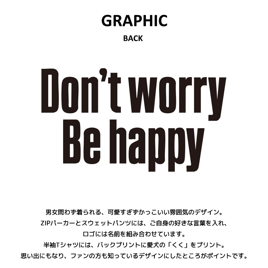| 商品Data | 桃果さんを迎えたmoz FOREST LABEL コラボレーション企画 今回は半袖Tシャツ、ZIPパーカー、スウェットパンツをご用意! 【デザイン】 男女問わず着られる、可愛すぎずかっこいい雰囲気のデザイン。 ZIPパーカーとスウェットパンツには、ご自身の好きな言葉を入れ、 ロゴには名前を組み合わせています。 半袖Tシャツには、バックプリントに愛犬の「くく」をプリント。 思い出にもなり、ファンの方も知っているデザインにしたところがポイントです。 ※現時点での商品の発送予定時期は【9月下旬頃~10月下旬頃順次発送】を予定しております。 尚、工場の生産の都合上、お客様のご入金・決済のタイミングにより前後する場合がございます。 予めご了承ください。 ※商品代金が10万円以上にて代引き決済を利用してのご注文につきましては、 トラブル防止のため、決済方法をクレジットカード決済もしくはコンビニ決済に変更 させていただく場合がございます。変更前にお電話、メールにてご連絡をさせていただきます。※ ※商品によっては撮影時にサンプルを使用しているため若干仕様が異なる場合がございます。 また、サイズ・カラーによっては仕様が異なる場合もございます。 ※手作業で縫製をしているため縫製の仕様により、 個体差が生じてしまいますので、1~2cm程度の誤差は予めご了承くださいませ。 ※洗濯機を使用した場合、お届け時のサイズより多少縮む場合がございます。 洗濯機を使用する場合は裏返してネットに入れることを推奨しております。 また、タンブラー乾燥機を使用しますとプリントが剥がれる恐れがありますので 避けていただきますようお願いいたします。 また、洗濯時の液温は40度以下とし、 塩素系および酸素系漂白剤の使用は避けていただきますようお願いいたします。 アイロンにつきましてもプリント及び刺繍部分は避け、 生地部分にアイロンをかける場合にはあて布をして110度(低温)にてお願いいたします。 ※また、受注生産とさせていただいておりますが、 各色・サイズ毎に生産数に限りがございます為、 生産数の上限に達しました場合在庫切れとなる場合がございます。 予めご了承頂けますようお願い致します。 |